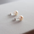 やわらかな艶が美しい淡水パールを使用した、1粒ネックレスと1粒ピアスのセットです。