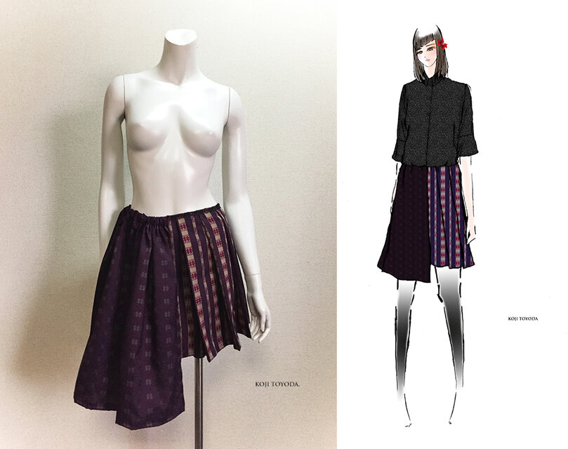 【1点もの・デザイン画付き】尾州織りジャガード生地アシメトリースカート(KOJI TOYODA)