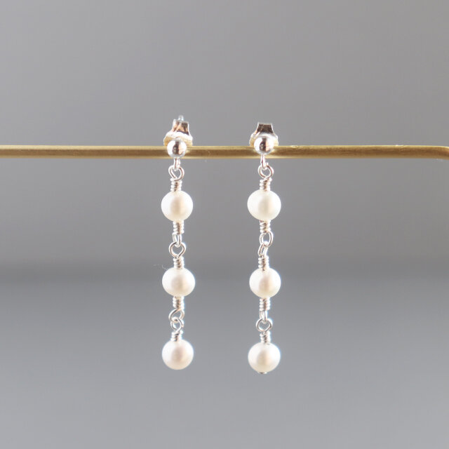 淡水パールを3粒連ねた、縦ラインが美しいピアスです。