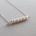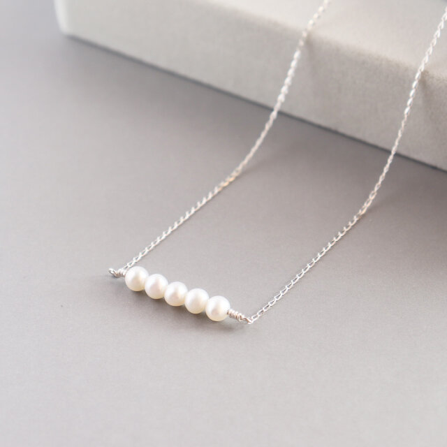 やわらかな艶をもつ淡水パールを5粒横並びに仕立てたネックレスです。