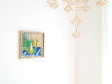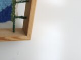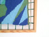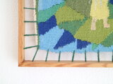 タペストリーは上部は固定されておらず、下部のみフレームに接着されている構造になっており、布の自然な張りを保ちながら、ずれないように作られています。