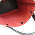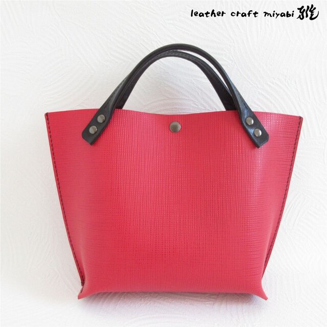 ◎格子状のシュリンクが施された肉厚でしっかりとした赤いシュリンクレザーにブラックのハンドルとステッチを合わせてシックに仕上げたトートです(^^