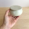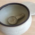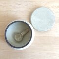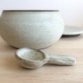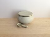 黒土製。中に納めて蓋をしていただくこともできる小さなさじ付きです。