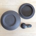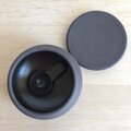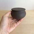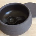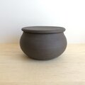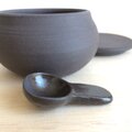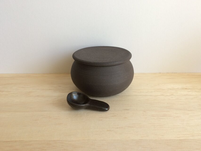 黒土製。中に納めて蓋をしていただくこともできる小さなさじ付きです。