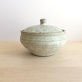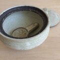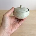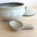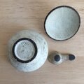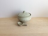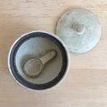 黒荒土製。中に納めて蓋をしていただくこともできる小さなさじ付きです。