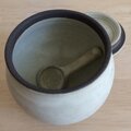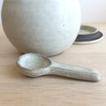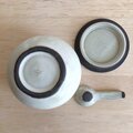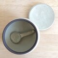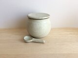 黒土製。中に納めて蓋をしていただくこともできるさじ付きです。