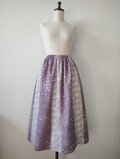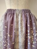 二種類の生地を縦縞に縫い合わせたギャザースカートには着物の裏地用の白い正絹生地をペチコート代わりに付けていますので肌触りもよく快適に着ていただけます。