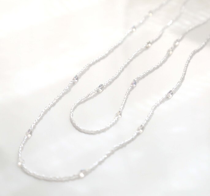 小さくてきらきらとした透明のビーズをシンプルに組み合わせて制作したロングネックレスです。