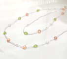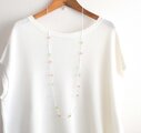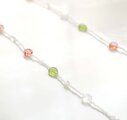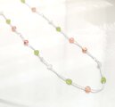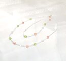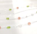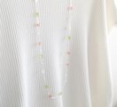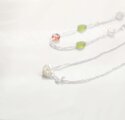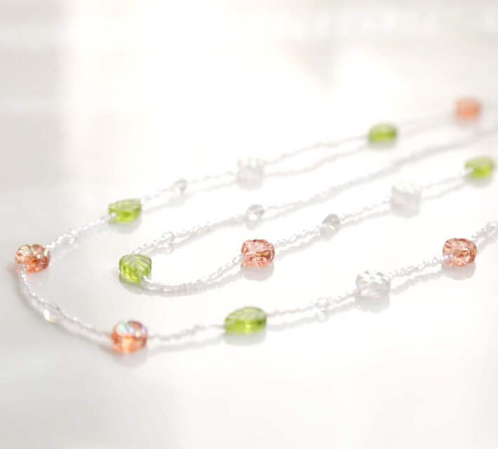 小さくてきらきらとした透明のビーズと、鮮やかなお花と葉っぱのチェコビーズを組み合わせて制作したロングネックレスです。