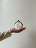 貝のようにぽってりとしたシルエットの手のひらサイズの蝦蟇口財布。