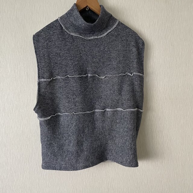 タートル衿幅は高くしています。インにシャツなどコーディネイトして頂いても可愛いです。切替え表に縫いしろ出しています。