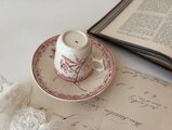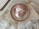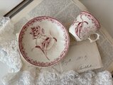 サルグミンヌの中でも、なかなか出会うことのできない希少な「Fontanges」シリーズのデミタスカップ&ソーサーです。春を告げる水仙の花が、やわらかな赤の濃淡で流れるように描かれています。