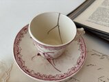 カップの一部に亀裂がありましたが、真鍮粉の金継ぎにてお直し済みです。