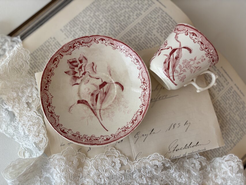 フランスアンティーク Sarreguemines (サルグミンヌ) / Fontanges(フォンタンジュ) カップ&ソーサー