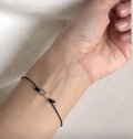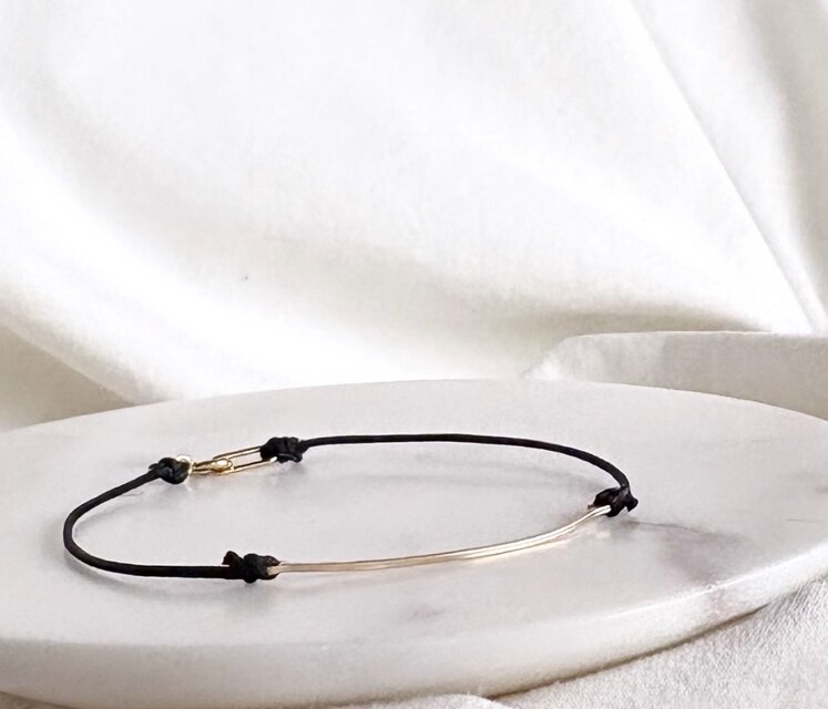 コードブレスレットですが、留め具はヒキワを使用していますのでカジュアルになりすぎずお召しいただけます。