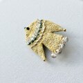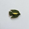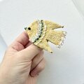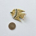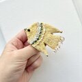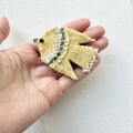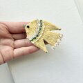 ステッチの合間にはちいさな黄色いガラスビーズを並べました。しっぽには、チェコガラスビーズで、こちらはゴールドカラーを吹きかけられたような、透明感の中に少しずつゴールドの色味が見えるビーズです。