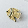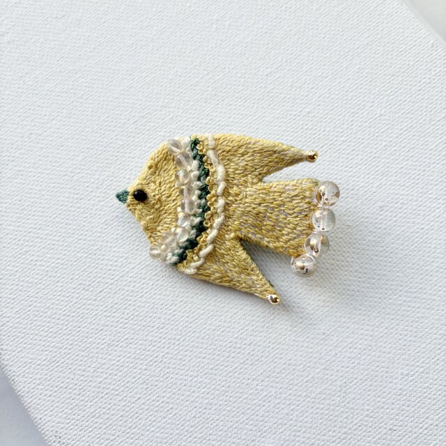 "幸せの黄色い鳥さん" happy yellow bird 草木染め糸を使った 手刺繍/鳥ブローチ