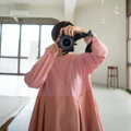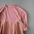 mixed fabric panel dress/切り替えワンピース/red heather