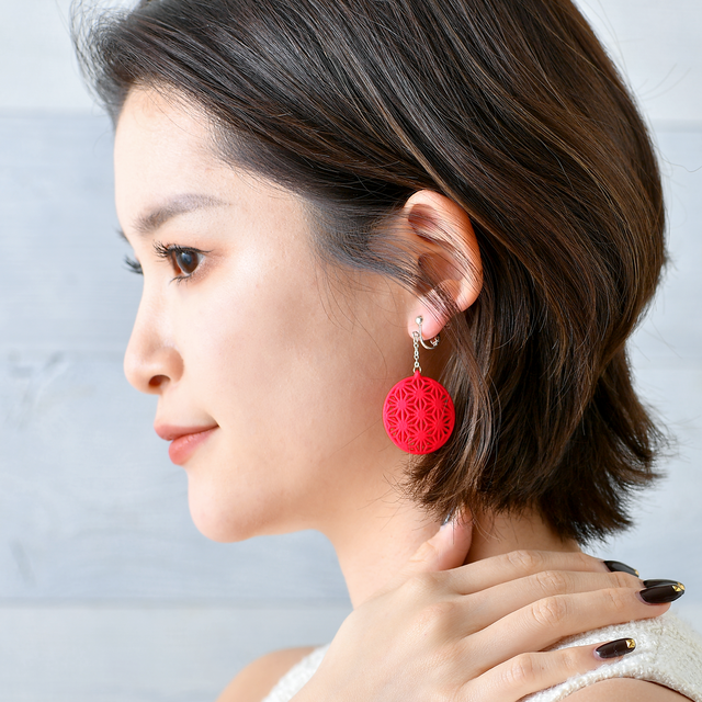 「麻の葉」模様をモチーフにしたイヤリングは、