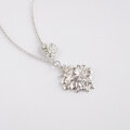 数種の花を束ねたブーケのようなモチーフをトップに使い、チェーン部分には双葉のメタルコネクターを繋げてあります。