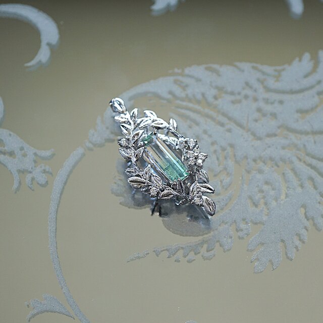 バイカラートルマリンを使用し、シルバーでボタニカル調のペンダントを製作いたしました。