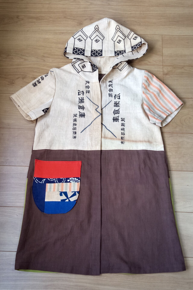 古布木綿とてぬぐいの柿渋染めフード付きジャケット 木綿