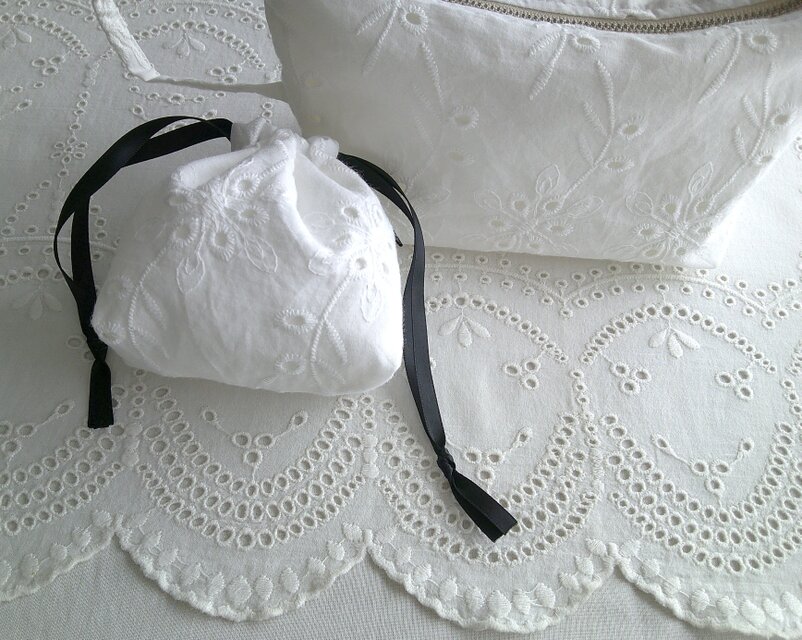 今日届きました。 コットンが柔らかく色も落ち着いてとても素敵ですね。✨ 白のカットワーク刺繍の小物入れもとても、繊細でいいですね。 大事に使わさせて頂きます。ありがとうございました。 作品楽しみに拝見させて頂きます。