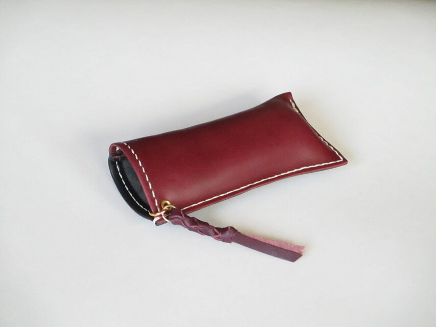 硬めの革「ブッテーロ」と柔らかめの「ナッパ」を組み合わせたメガネケースです。