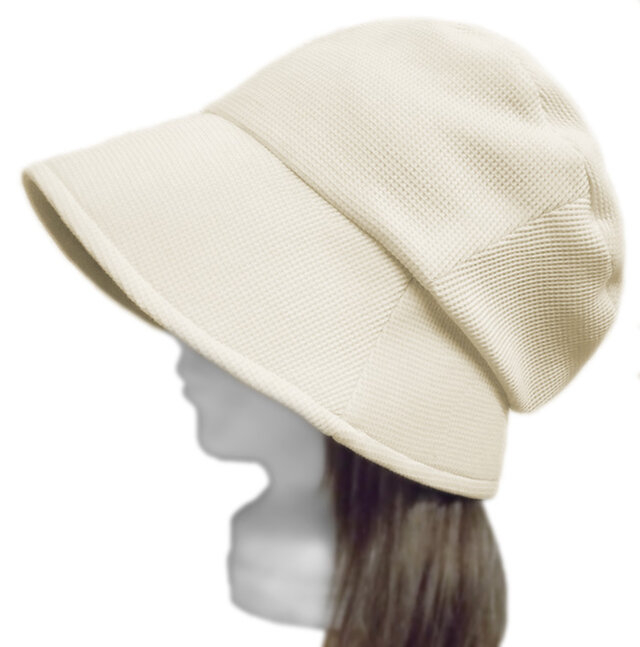 ゆったりトップ・つば広バケットハット◆オーガニックコットン ワッフル織ニット/ベージュ系 ◇紫外線対策・オールシーズン着用◇