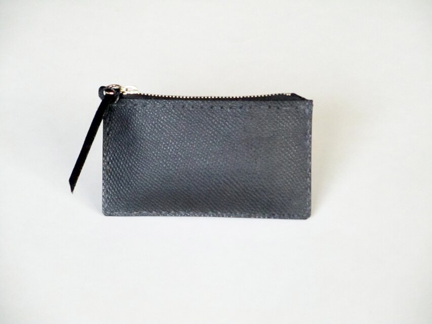 細かい型押しを施した牛革で、傷、汚れがつきにくく、軽くて、薄くて、しっかりしています。表面は細かくボコボコしています。ルイヴィトンで使われている型押しの革と同じです。