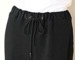 ウエストはゴム仕様でウエストベルトも柔らかな異素材を使いハトメを開けて紐を通しました。これによりウエストの収まり具合の微調整ができます。