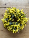 無事に受け取りました。とてもみずみずしいフレッシュなリースで、かわいいですね。実物も大満足です。とても良い香りで、葉っぱとミモザの配分も理想的で、大好きなリースになりました。また利用させていただきます。ありがとうございました!