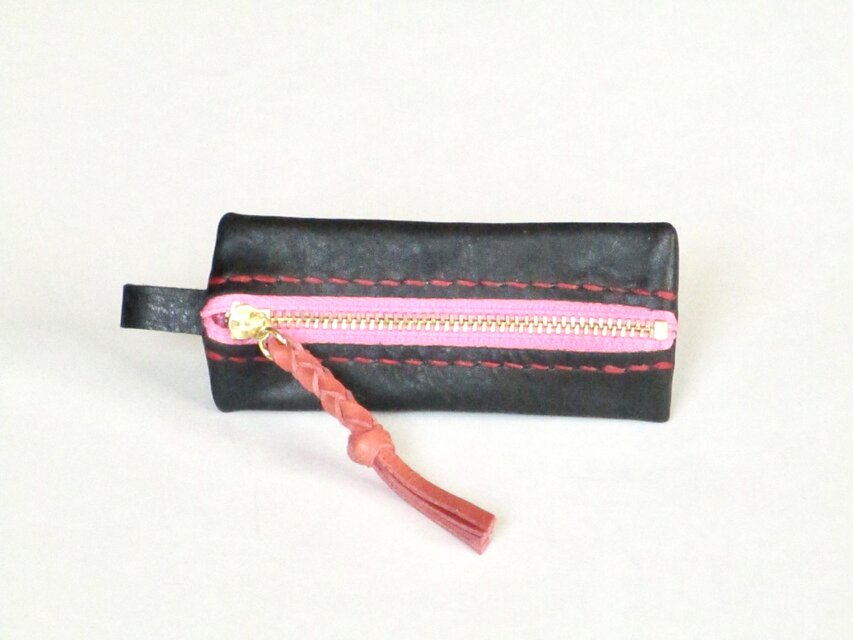 色 黒、ファスナーはピンク、糸は赤