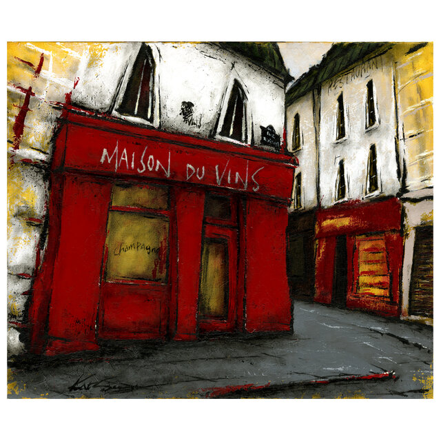 風景画 パリ 版画「街角の緑のひさしのあるレストラン」とっても素敵な作品です。家の中が一瞬でオシャレな空間に変わりました。梱包に至るまで非常に丁寧で安心してお取引させていただけました。