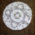 中央にプチポワン刺繍のあるドイリー。