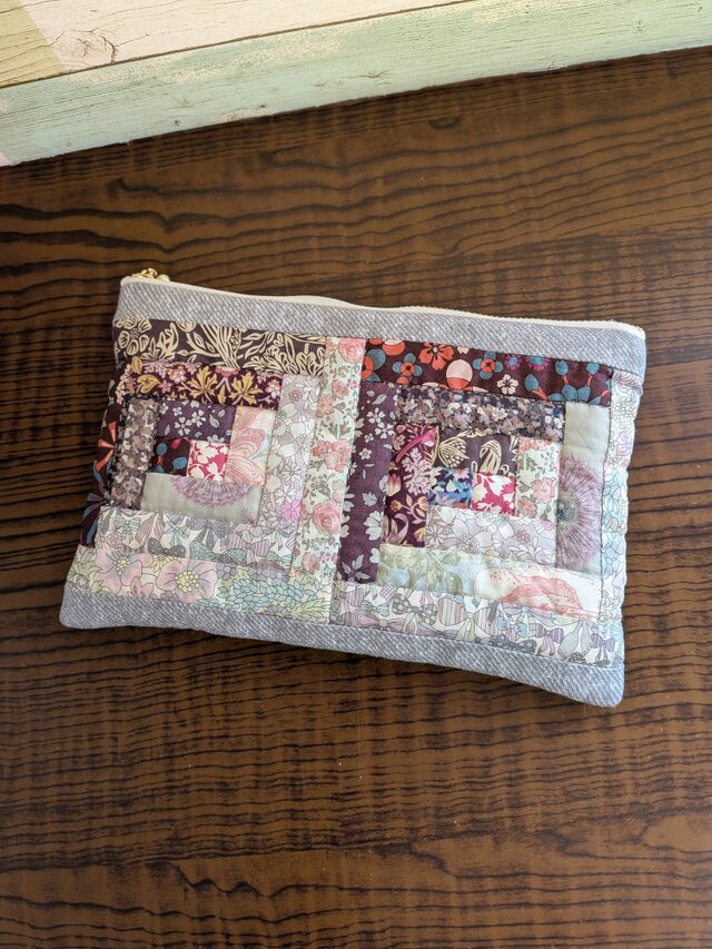 ログキャビンのぺたんこポーチ グレー