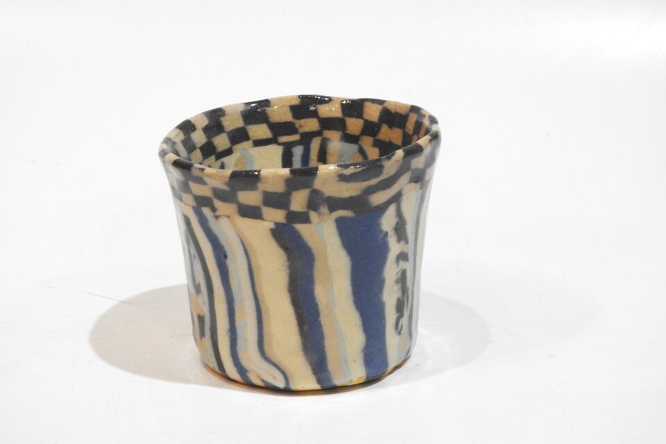ふちには黒土とうす茶色の市松模様で
