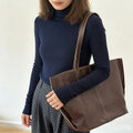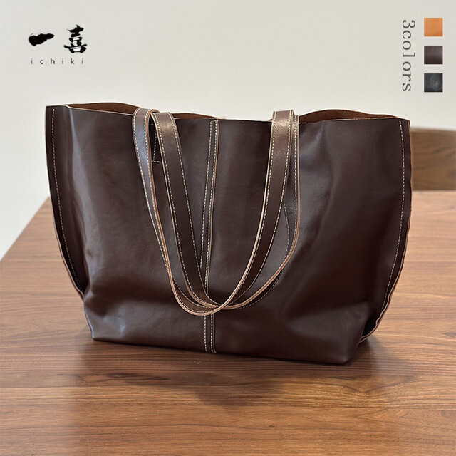本革レザー ハンドメイド 通勤トートバッグ A4収納 長く愛される 定番 大容量バッグ ブラウン S21
