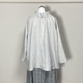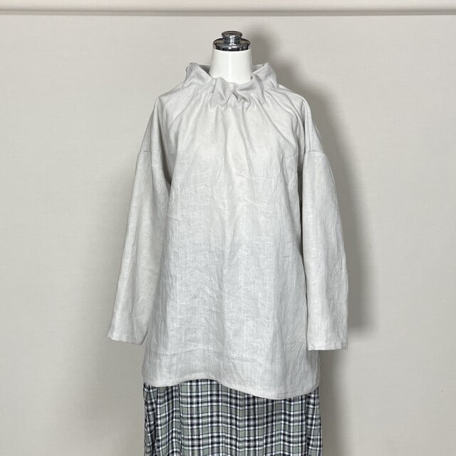 カラーリネン◆フラワーネックブラウス 長袖◆ナチュラル◆フリーサイズ(中厚、リネン100%)