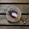レンズキャップを入れる事が出来る、シルク糸&麻紐ヘンプのホルダーです。
