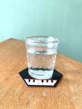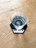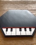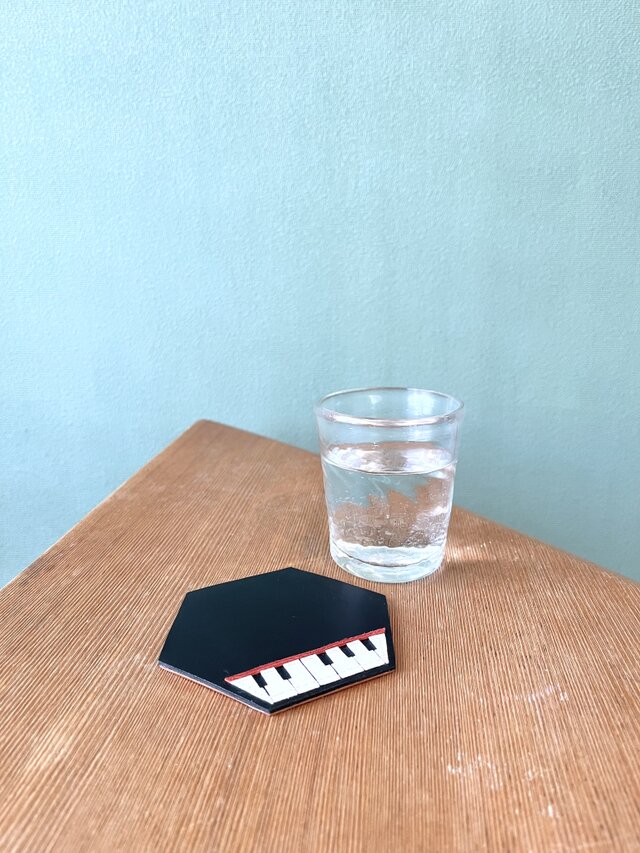 ピアノの鍵盤を一枚ずつ丁寧に縫いつけた本革製のヘキサゴン(六角形)コースターです。