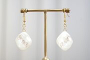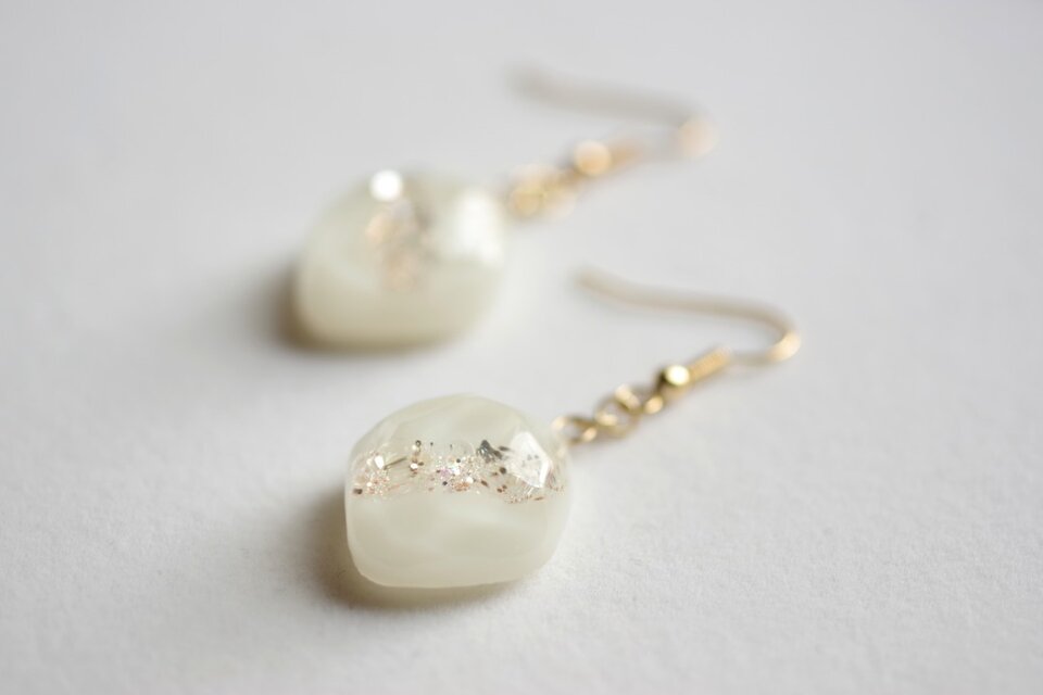 あたたかみのあるオフホワイトを背景に天の川のようにラメを一筋走らせた、シンプルなピアス。