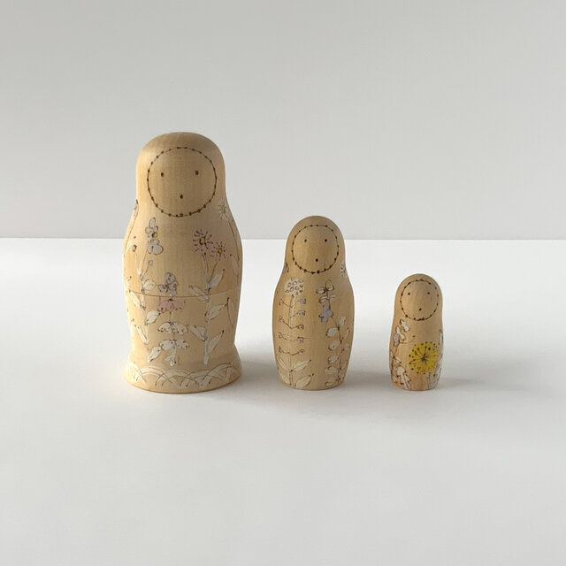 木の人形が入れ子になっているマトリョーシカ。3体入りの小さめマトリョーシカです。