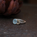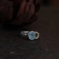 1.45ctのミルキーな表情のアクアマリンとゴールデンイエローサファイアを