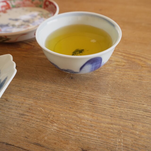 お茶を注ぐと、内側の白と青がやさしく溶け合い、日常のひと息を、少しだけ特別な時間に変えてくれる存在です。湯呑み代わりや、小さなおかずにも。