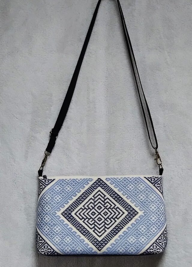 津軽こぎん刺しで仕立てたショルダーバッグです