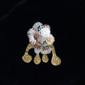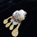 のびやかな四肢を表現する真鍮と、ビーズや天然石の立体刺繍を組み合わせたブローチ。