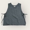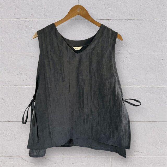 さりげなく結ぶサイドリボンがアクセントのリネンベスト。
