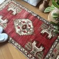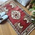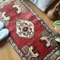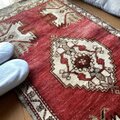 レア50×102 アンティークレッド 小さなメダリオン トルコヴィンテージラグ