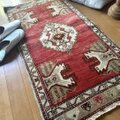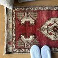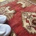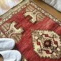 お願いした指定日時で無事に受け取りました(^-^) 色合いや風合い、その掠れっぷりも本当に素敵で、馴染みも良いわりに部屋の雰囲気がガラッと変わります。 ヴィンテージラグってこんなに良いものだったんですね。 これからも覗かせていただきます。 梱包も丁寧でとても可愛いものがくっついてました。ありがとうございました!